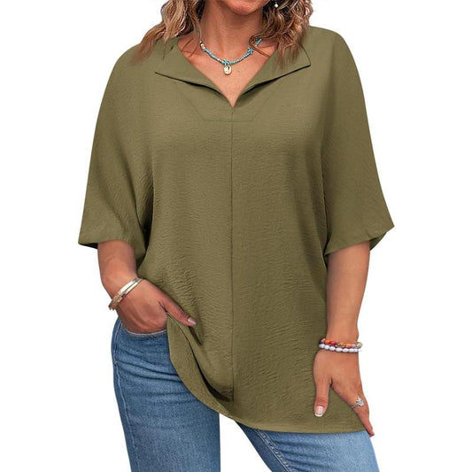 Beautiful【XI-5Xl】Womens plus Size Tops Short Sleeve V Neck Tee Blouse Summer Loose Fit Casual Tunic Top