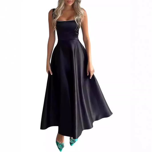 Women's Square Collar Low Collar Sleeveless Long Dress