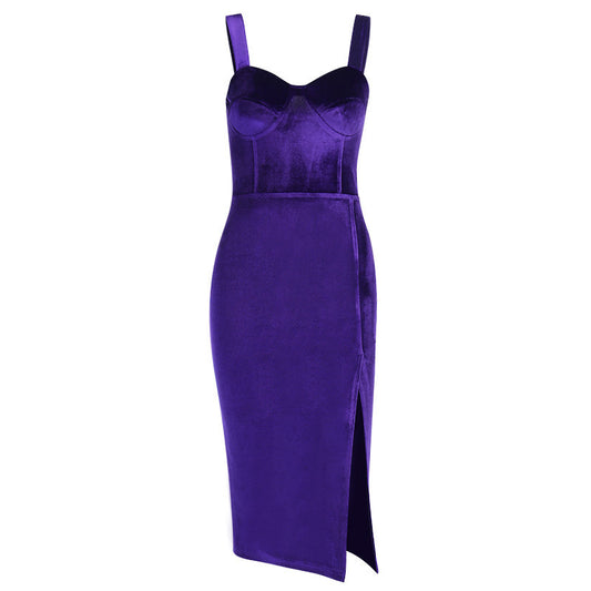 Dress Suede Patchwork Ruffled Chest-wrapped Pleated Princess Dress For Women