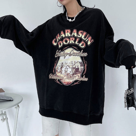 Fleece-lined Thick Round Neck Loose-fitting Solid Color Long Sleeves Sweater